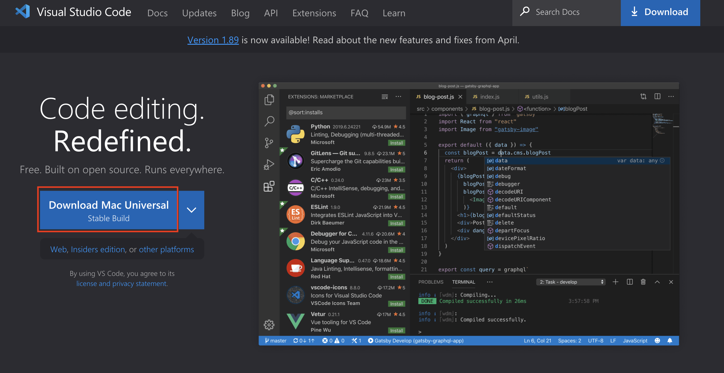 コーディング特化のエディタは色々ありますが、ここではVisual Studio Code (VS Codeと呼ばれます。)